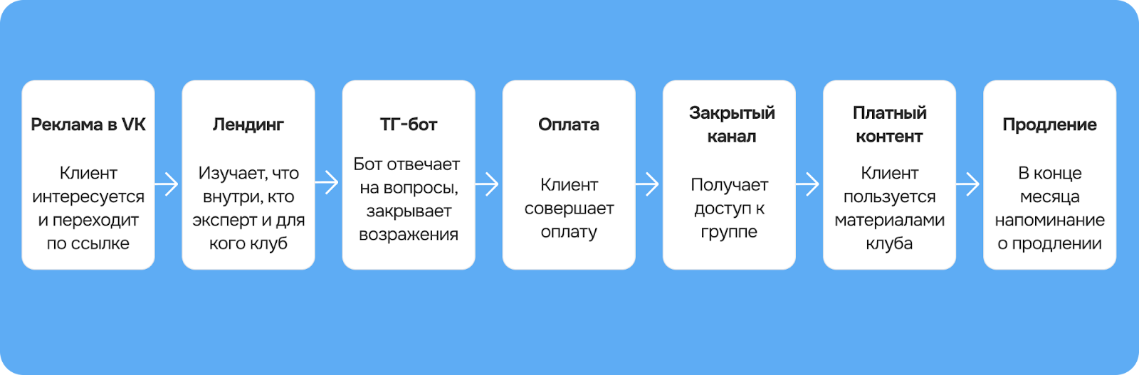 Рассмотрим элементы CJM на примере клуба по подписке в Telegram: