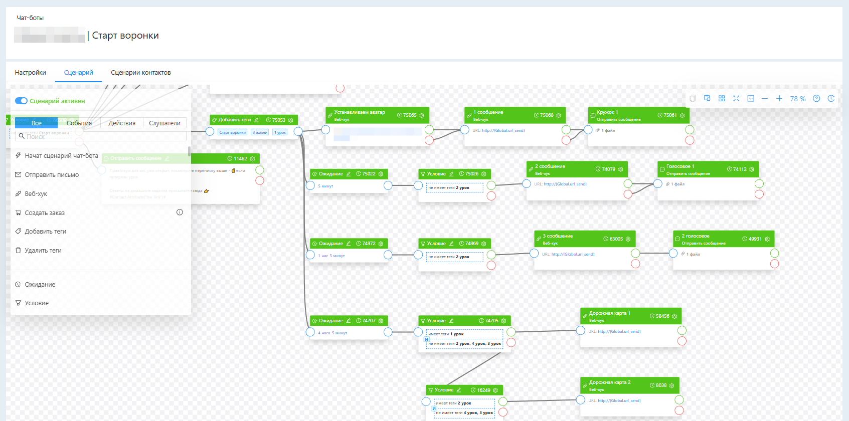 Шаг 1. Собрали автоматическую воронку через функционал «Сценариев» с дополнительным скриптом, который генерирует персональные изображения.