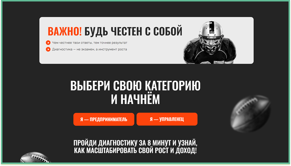 Интегрировали виджет на посадочную страницу Tilda с переходом на диагностику-квиз.