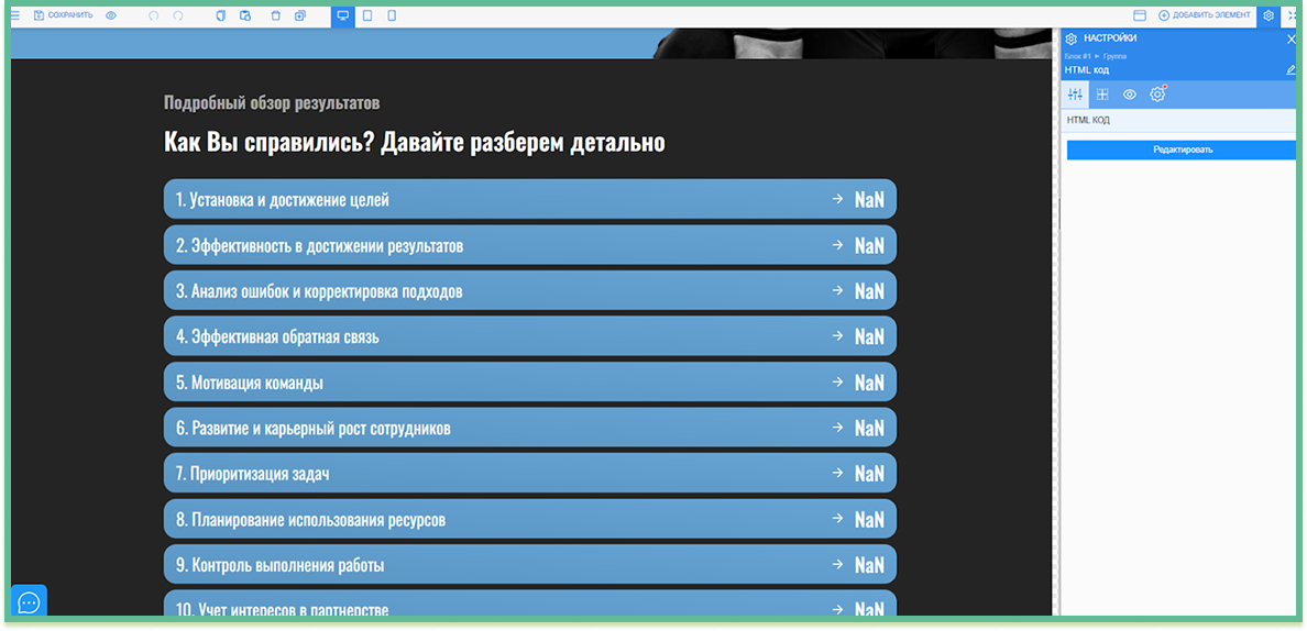Шаг 2. Настроили страницу с результатами тестирования