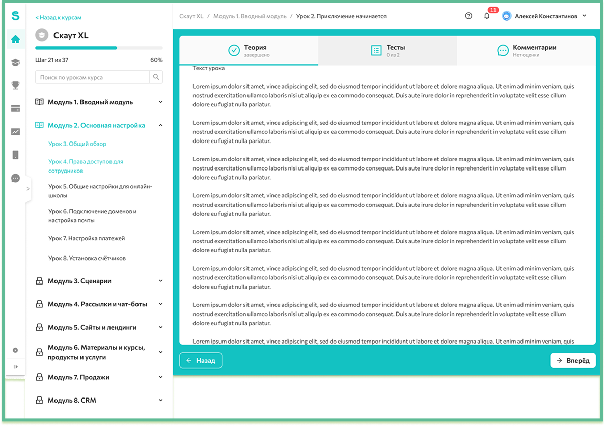 Сделаем оформление личного кабинета и курсов под ключ — в фирменном стиле, с удобной навигацией и продуманным интерфейсом, который работает стабильно и повышает ценность вашего продукта.